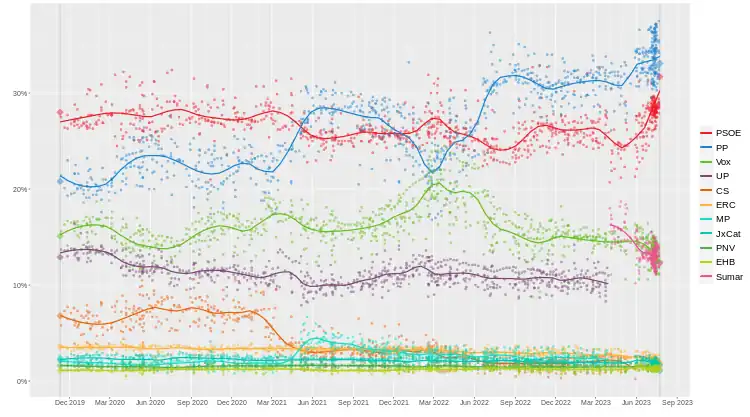 |date=(ajutor) - „Spain — National parliament voting intention”. Politico. 17 iuliey 2023. Verificați datele pentru: