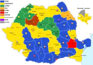 | Convenția Democrată Română | Victor Ciorbea | ? | 39,61% | ? | 56,74% |