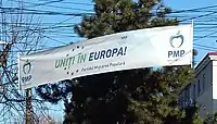 - Partidul Mișcarea Populară (). „Sloganul de campanie al PMP pentru alegerile europarlamentare este Uniți în Europa! #UnitiinEuropa”. Facebook.