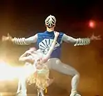 Interpretarea piesei „Alejandro” în varianta originală a turneului Monster Ball a prezentat aluzii sexuale între Gaga și dansatorii ei (stânga), în timp ce în varianta reorganizată, aceasta a făcut o baie într-o fântână asemănătoare cu cea Bethesda Terrace (dreapta). | ||
