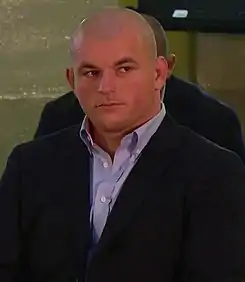 ![]() Alexandru Țăruș în 2015 la o conferință de presă pentru prezentarea lotului României înainte de plecarea către Cupa Mondială din Anglia | |