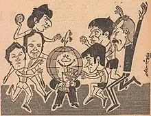 Caricatura din 1974: Finala Campionatului Mondial de Handbal: R.D. Germania - România