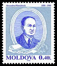 ![]() Portretul lui Alexandru Plămădeală pe un timbru din Republica Moldova (2003). | |
