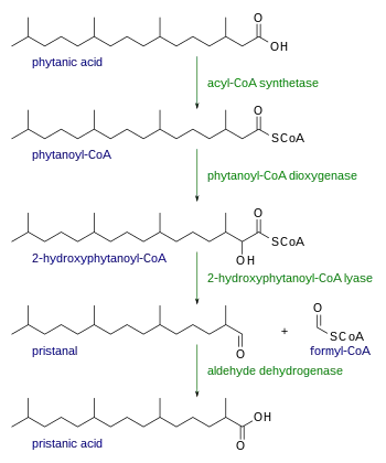 - Casteels, M; Foulon, V; Mannaerts, GP; Van Veldhoven, PP (), „Alpha-oxidation of 3-methyl-substituted fatty acids and its thiamine dependence”, European Journal of Biochemistry, 270 (8): 1619–1627, doi:10.1046/j.1432-1033.2003.03534.x
