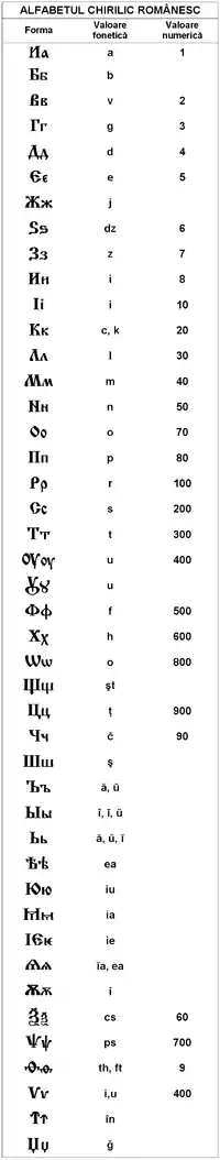 | Alfabetul chirilic român | |