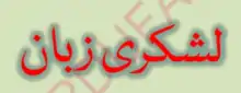 titlul Lashkari Zaban (limbă Horde) în scriptul Nastaliq