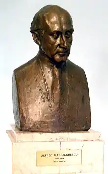 ![]() Bustul lui Alfred Alessandrescu expus în holul Studioului de concerte 'Alfred Alessandrescu' al Societății Române de Radiodifuziune | |