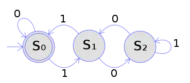 - A are exact o stare inițială q0, care nu este accesibilă din nicio altă stare. Adică, pentru orice stare q și orice simbol o, nu conține q0.