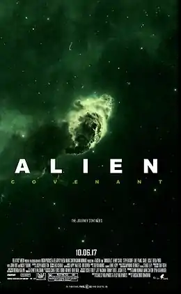Alien: Covenant[8] (Alien: Pactul) este un film științifico-fantastic care a avut premiera la Londra la 4 mai 2017. În film apar Michael Fassbender[9] și Noomi Rapace[10] în rolurile principale.