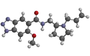 Alizaprida este un medicament utilizat ca prokinetic și antiemetic. Prezintă o structură chimică similară cu cea a metoclopramidei.[9]