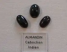 Mineralul almandin este un granat aluminoferos, de culoare roșie-brună. Formula sa chimică este Fe3 Al2(SiO4)3 cu urme de Ti (titan), Mn (mangan), Mg (magneziu), Ca (calciu).