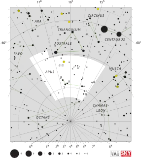 Alpha Apodis (Alpha Aps, α Apodis, α Aps) este cea mai luminoasă stea din constelația sudică Pasărea Paradisului, cu o magnitudine aparentă de 3,825. [7] Cu o declinație de –79°, este o stea circumpolară. Poate fi găsită pe cer prin desenarea unei linii imaginare ce trece prin Alpha Centauri și Alpha Circini și care ajunge la polul sud ceresc. [8]