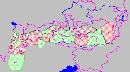 - Munții de la est de râul Mur (inclusiv Hochwechsel, Alpii Fischbach, Grazer Bergland (1)