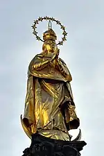 Coloana este amplasată pe o bază pătrată din marmură de Salzburg cu un podium în trepte. Cele patru cartușe ale soclului conțin inscripții. În vârful coloanei corintice din bronz se află statuia aurită a Fecioarei Maria, care a fost realizată după modelul statuii Mariensäule Am Hof realizate la Viena în 1646.[5]