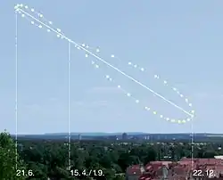 Analema văzută la amiază, de pe Pământ, în emisfera nordică.