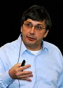 Andre Konstantinovici Geim FRS (în rusă "Андрей Константинович Гейм", n. , Soci, RSFS Rusă, URSS) este un fizician britanic-neerlandez, fost rus, de etnie germană, cunoscut pentru descoperirea grafenului,[21][22] dezvoltarea unui material care își schimbă culoarea și demonstrații de levitație diamagnetică. Este laureat al Premiului Nobel pentru Fizică pe 2010 împreună cu Konstantin Novoselov, "pentru experimente revoluționare privind materialul bidimensional grafen”.[23]