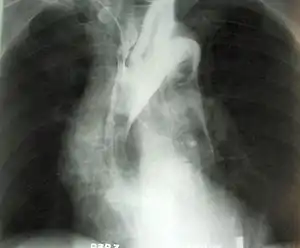 Termenul se mai folosește – în cadrul unor cuvinte compuse, pentru o descrie condiția în care apare o dilatație patologică segmentară situată la nivelul peretelui inimii – cel mai frecvent situată la nivelul ventriculului stîng și adesea consecința unui infarct miocardic transmural.[4]