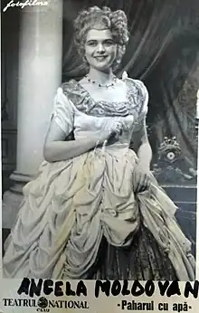 Angela Moldovan (n. , Chișinău, România – d. , București, România) a fost o interpretă română de muzică populară, muzică clasică și romanțe, compozitoare, textieră, actriță de teatru și de film. În anul 1962, cronicarul american Paul Hume a supranumit-o „Privighetoarea României”. În același an, 1962, i s-a acordat titlul de Artistî Emerită a României. În 2002 i s-a acordat Ordinul național „Steaua României” în grad de Cavaler. A fost membru al Uniunii Compozitorilor din Republica Populară Română (în perioada comunistă) și membru UCMR, ADA (Uniunea Compozitorilor și Muzicologilor din România, Asociația pentru Drepturi de Autor). Angela Moldovan este interpreta celebrului cântec „Mi-am făcut bundiță nouă”. A fost prima interpretă a cântecului popular simbol al zonei folclorice a Moldovei – „Trandafir de la Moldova”. A fost căsătorită cu actorul Victor Moldovan, și cu textierul, scenaristul Mircea Block, autorul versurilor a mai multor binecunoscute cântece precum: „Mi-am făcut bundiță nouă”, „Fata neichii”, „Sârba de la Deleni”, „Ia mai zi-i măi fluieraș”, „Merge satul la cules”, „Dorul mă cată pe-acasă”.[1]