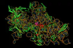 Exemple de antibiotice care se leagă de subunitatea 30S a ribozomului sunt aminoglicozidele, tetraciclinele, spectinomicina și capreomicina, iar cele care se leagă de subunitatea 50S a ribozomului sunt macrolidele, streptograminele, lincosamidele, cloramfenicolul, pleuromutilinele și oxazolidinonele.[102][103] Acidul fusidic prezintă un mecanism aparte, fiindcă se leagă de factorul de elongare G implicat în translație.[103] De asemenea, puromicina prezintă simililtudine structurală cu o catenă a ARN-ului de transport, fiind astfel fraudulos incorporat în ribozom și blocând etapa de elongare a catenei polipeptidice.[104]