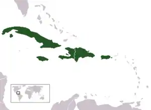 - Hispaniola, cu două state, partea de vest Haiti, partea de est Republica Dominicană