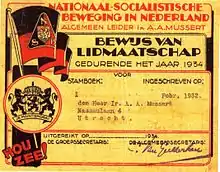Pe 14 decembrie 1931, Mussert, Cornelis van Geelkerken și alte zece persoane au fondat Nationaal-Socialistische Beweging (NSB) (Mișcarea Național-Socialistă), omologul neerlandez al Partidului Național-Socialist German, adică al Partidului Nazist. În primii săi ani, NSB a susținut că printre membrii săi se aflau mai multe sute de evrei,[7] până când partidul a adoptat o ideologie antisemită, sub influența nazismului german.