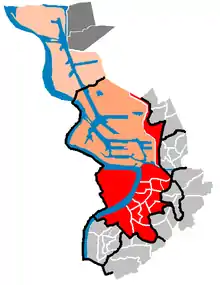 Zona centrală a districtului și cartierul Linkeroever, pe celălalt mal al Scheldei.