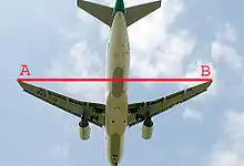 Distanța dintre punctul A și punctul B reprezintă anvergura acestui avion Airbus A320.