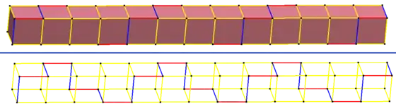 O stivă de prisme drepte poate genera apeirogoane elicoidale izogonale, care alternează laturile în jurul axei și de-a lungul axei; de exemplu, un șir de cuburi poate genera acest apeirogon elicoidal izogonal alternând laturile roșii și albastre: