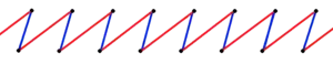 Un apeirogon regulat în zigzag are simetria de friză (2*∞), D∞d.