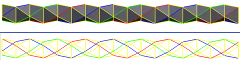 Similar, o stivă alternantă de prisme și antiprisme poate produce un apeirogon elicoidal izogonal, de exemplu o stivă triunghiulară de prisme și antiprisme cu un apeirogon elicoidal izogonal: