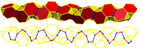 De asemenea, un apeirogon elicoidal izogonal cu un unghi de răsucire irațional poate fi construit din tetraedre trunchiate stivuite ca o elice Boerdijk–Coxeter, alternând două tipuri de laturi, între perechi de fețe hexagonale și perechi de fețe triunghiulare: