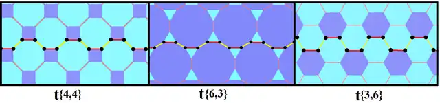 Exemple de apeirogoane necoliniare alungite cvasiregulate pot fi văzute ca poligoane Petrie trunchiate în pavări regulate trunchiate ale planului euclidian: