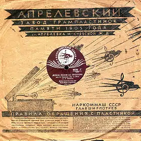 Prima fabrică de discuri din țară a fost Aprelevski zavod gramplastinok, înființată de afaceriștii germani Gottlieb (Bogdan) Moll, Albert Vogt și August Kybarth și dată în folosință în august 1910. Sediul se afla în apropierea gării Aprelevka de pe traseul feroviar Moscova–Kiev. Inițial, personalul număra cincizeci de angajați, agricultori din localitate aflați în căutare de locuri de muncă. Primele stocuri de discuri – pentru care materia primă era importată din Occident – au fost comercializate în orașele Moscova, Sankt Petersburg și Riga. Casa de discuri a fabricii a primit denumirea de Metropol Record. Noua afacere din Aprelevka s-a dovedit un succes și după câțiva ani s-a dorit extinderea întreprinderii. Izbucnirea Primului Război Mondial (1914) a dus la abandonarea unor astfel de planuri și a pus în dificultate conducerea germană din cauza viziunilor antigermane.[3]