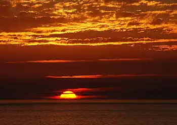 Soarele cu aproximativ un minut înainte de apusul astronomic.