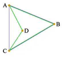 Însă această metodă nu funcționează întotdeauna. În imaginea de alături fie patrulaterul concav ABCD (verde). Aranjamentul vârfurilor sale este mulțimea {A, B, C, D}. Anvelopa sa convexă este triunghiul ABC (albastru). Aranjamentul vârfurilor anvelopei sale convexe este mulțimea {A, B, C}, care nu este identică cu cea a patrulaterului. De aceea anvelopa convexă nu este o metodă de a descrie aranjamentul vârfurilor.