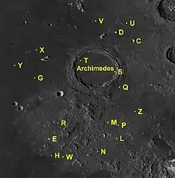 Listă a craterelor satelite ale craterului Archimedes[4]:
