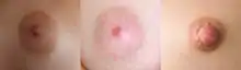 ![]() Areola unei femei în regiunea apicală a sânului, în centru - mamelon | |