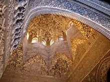 Un element destul de caracteristic lumii islamice ilustrează importanța elementelor arhitecturale cu rol decorativ: muqarnele, numite și "muqarba" în țările din occidentul musulman sau, mai simplu, "stalactite". În fapt, sunt mici nișe asociate geometric și formând o compoziție tridimensională[4]. Ele sunt frecvente la cupole și la porțiunile de tranziție, dar și pe unele capiteluri, arcade etc. Acest element are o origine obscură : se crede frecvent că s-ar fi născut în Iranul oriental prin secolul X, dar circulă și alte ipoteze (Egipt, occident, Bagdad...). Oricum, este larg răspândit în întreaga lume islamică, și magnificele bolți cu muqarnas ale Alhambrei din Granada nu au nimic de invidiat la cele ale Timurizilor. Mai multe materiale sunt utilizate pentru a le crea, în funcție de regiuni și perioade : stuc și faianță în Iran, piatră în Egipt și Siria.