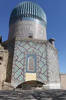 - Mozaicul din ceramică este destul de specific pentru arta timuridă. Este, în fapt, forme decupate din placi ceramice de diferite culori. Aceasta tehnica, extrem de delicate, va fi înlocuit sub Safavid de cuerda seca, mai puțin complexă și mai puțin costisitoare, dar care permite efecte să fie destul de asemănătoare.