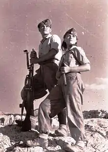 - ^ «Εγώ, παιδί του Λαού της Ελλάδας και μαχητής του ΔΣΕ, ορκίζομαι: Να πολεμήσω με το όπλο στο χέρι, να χύσω το αίμα μου και να δώσω την ίδια μου τη ζωή, για να διώξω από τα χώματα της πατρίδας μου και τον τελευταίο ξένο καταχτητή. Για να εξαφανίσω κάθε ίχνος φασισμού. Για να εξασφαλίσω και να υπερασπίσω την εθνική ανεξαρτησία και την εδαφική ακεραιότητα της πατρίδας μου. Για να εξασφαλίσω και να υπερασπίσω τη Δημοκρατία, την τιμή, την εργασία, την περιουσία και πρόοδο του λαού μου. Ορκίζομαι να είμαι καλός, γενναίος και πειθαρχικός στρατιώτης, να εκτελώ όλες τις διαταγές των ανωτέρων μου, να τηρώ όλες τις διατάξεις του κανονισμού και να κρατώ τα μυστικά του ΔΣΕ. Ορκίζομαι να είμαι υπόδειγμα καλής συμπεριφοράς προς το λαό, φορέας και εμψυχωτής στη λαϊκή ενότητα και συμφιλίωση και να αποφεύγω κάθε πράξη, που θα με εκθέτει και θα με ατιμάζει σαν άτομο και σα μαχητή. Ιδανικό μου έχω τη λεύθερη και ισχυρή Δημοκρατική Ελλάδα, την πρόοδο και ευημερία του λαού. Και στην υπηρεσία του ιδανικού μου θέτω το όπλο μου και τη ζωή μου. Αν ποτέ φανώ επίορκος και από κακή πρόθεση παραβώ τον όρκο μου, ας πέσει πάνω μου αμείλικτο το τιμωρό χέρι της Πατρίδας και το μίσος και η καταφρόνια του λαού μου».