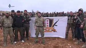 ![]() Luptători ai consiliului militar al-Bab, parte a Centrului de Operații Hawar Kilis, în timpul bătăliei de la al-Bab | |