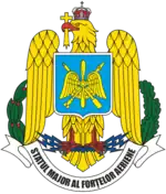 Forțele Armate Române sunt formate din trei categorii de arme: Forțele Terestre, Forțele Aeriene, Forțele Navale , aflate sub comanda Statului Major al Apărării, direct subordonat Ministerului Apărării Naționale. Pe timp de război, Președintele României este comandatul suprem al Forțelor Armate. Ministerul Apărării Naționale are prevăzute, potrivit proiectului pe 2009, cheltuieli în valoare de 7,65 miliarde de lei, respectiv 1,3% din PIB,[8] ceea ce reprezintă cu aproximativ două miliarde de lei mai puțin față de suma prevazută în proiectul fostului Guvern Tăriceanu.[9] Modernizarea armatei române necesită, în următorii 10 ani, 13 miliarde euro, doar pentru programele mari de înzestrare, planificate atât pentru forțele aeriene, cât și pentru cele terestre și navale.[10] În prezent, numărul total de efective participante la misiuni internaționale este de 1601.[11] Momentan, sunt trupe române în Bosnia și Herțegovina, Kosovo, Irak și Afganistan.[12] Serviciul militar obligatoriu a fost suspendat din 2007.[13][14][15]