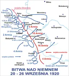 Armata a 3-a a luptat împotriva polonezilor din jurul Dokșiți (До́кшицы) și Parafianovo (iunie-iulie 1920) și a participat la operațiunea din iulie 1920. În timpul bătăliei de la Varșovia (1920), a dus lupte pe Frontul Central între Kock și Brodi sub comanda lui Vladimir Lazarevici.[5] În septembrie, a purtat lupte în zona Druskininkai și Așmiani și a fost învinsă în bătălia de la râul Niemen (20 - 26 septembrie).[6][7] În noiembrie-decembrie, a acționat împotriva detașamentelor lui Stanisław Bułak-Bałachowicz din Belarus.[8][9]