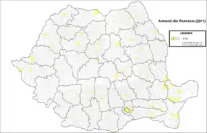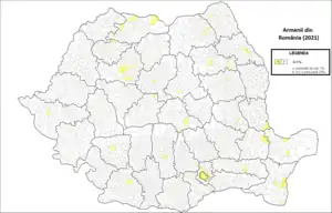 Conform recensământului din 2011, în România erau 1.361 de armeni.[4] La recensământul din 2002 au fost 1.780 de armeni, mulți în familii mixte, din aceștia 721 declarându-și limba maternă ca fiind limba armeană.