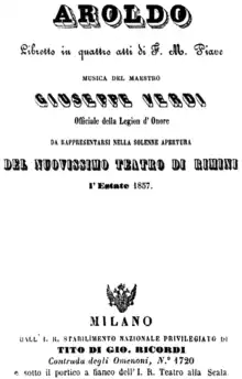 ![]() Pagina de titlu a libretului, Milano 1857 | |