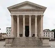 Partenonul de pe Acropola din Atena, cel mai cunoscut templu grec doric, construit din marmură și calcar, între circa 460-406 î.Hr., dedicate zeiței Atena[21]
