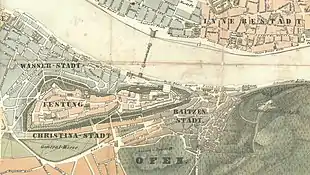 - divizia Kmety la nord-est de Buda pe malul Dunării din cartierul Víziváros al Budei