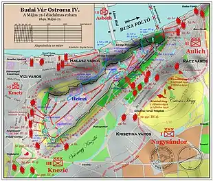 - secțiunea între dealul Gellért și Dunăre a fost ocupată de corpul II condusă de generalul Lajos Aulich[46]