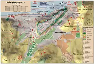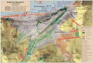 - între dealul Kissváb și dealul Gellért a fost poziționat corpul I condus de generalul József Nagysándor