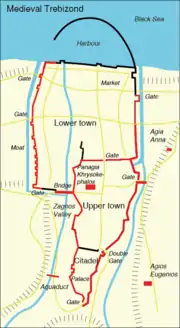 ![]() Planul fortificațiilor orașului medieval Trapezunt. | |||||||